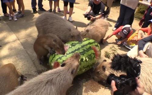想象一个阳光明媚的午后,水豚们聚集在河边,它们的眼神中闪烁着对西瓜的渴望。这时,一块巨大的西瓜被小心翼翼地放在它们面前。水豚们迫不及待地围了上去,一场吃瓜盛宴就此拉开帷幕。